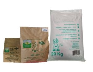 Arena de 8 kilos en 4 bolsas compostables de maíz, una vez se acaba la arena, usa el interior de la caja como rascador o juguete. – S