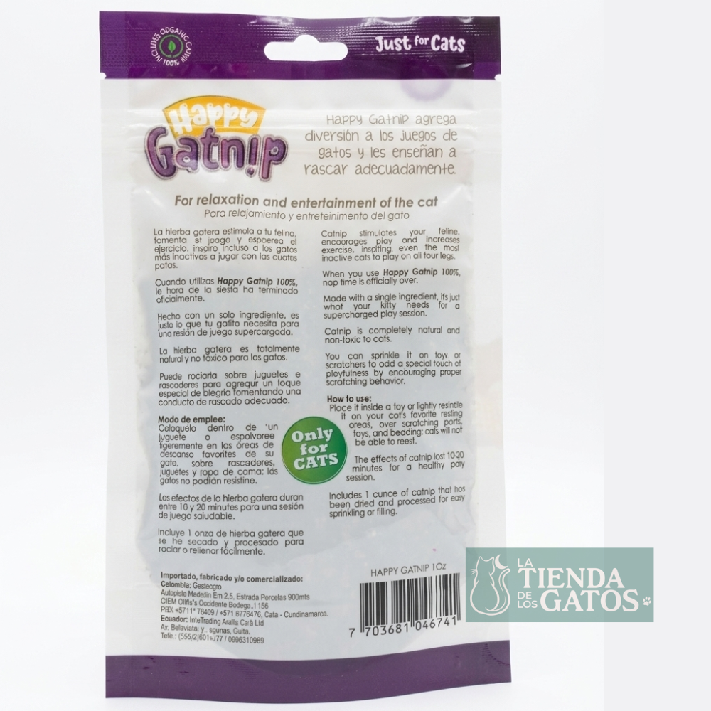 Alivio del Estrés: Ayuda a los gatos a relajarse después de la explosión inicial de energía con la Catnip para gatos – Bolsa de hierba gatuna Happy Gatnip – 1 oz.