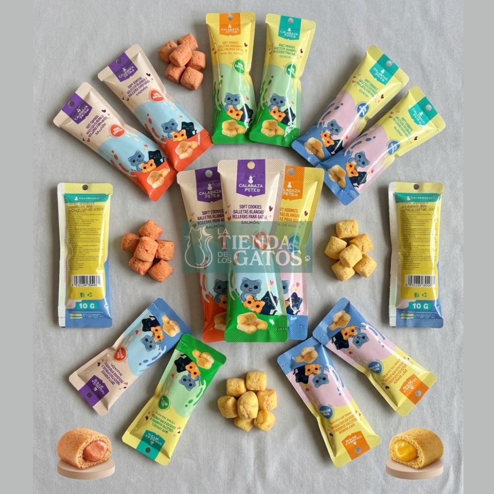 Porción Controlada: El empaque de las Galletas blandas rellenas de diversos sabores para gatos – Bolsa x 10 gramos es ideal para mantener la frescura.